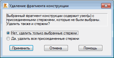 Это диалоговое окно используется для указания того, требуется ли удалять все смежные стержни выбранного сечения.