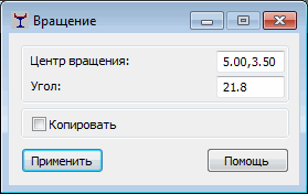 Задать центр вращения и угол, на который контур будет повернут, можно графически или путем ввода векторных координаты в диалоговом окне Вращение.
