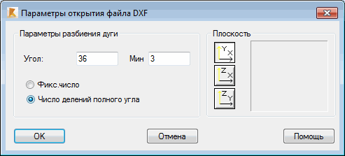 При выборе данной опции, открывается диалоговое окно "Параметры открытия файла DXF".