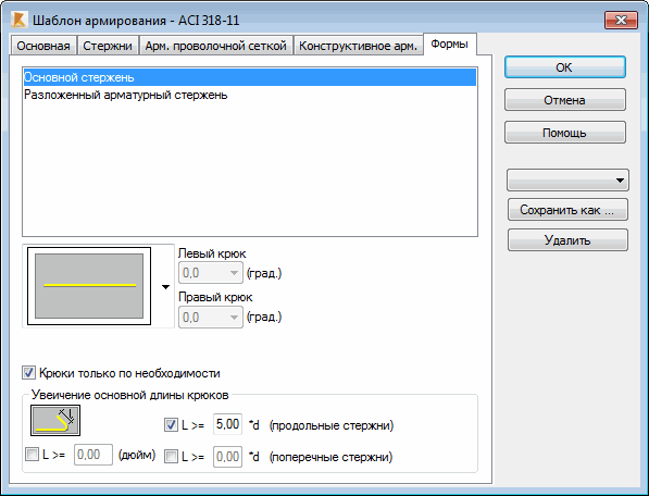 Можно также использовать опцию, которая позволяет определять длину крюка непосредственно (задать значение длины) или связать с длиной и диаметром стержня.