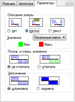 - нет – при выборе этой опции описания величин, доступных в диалоговом окне Эпюры, на графиках этих величин будут отсутствовать;