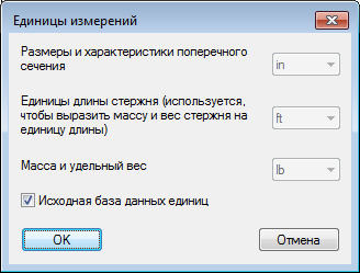 Изменения, внесенные в единицы измерения, используемые в базе данных сечения могут быть сделаны после отключения исходных единиц базы данных. Только затем будет доступен список соответствующих значений.