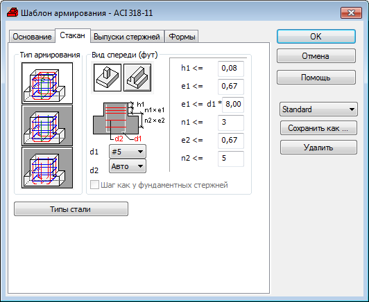 Эта опция доступна для ленточного фундамента. Задается такой же шаг хомута по вертикали, что и шаг продольных стержней в фундаменте.