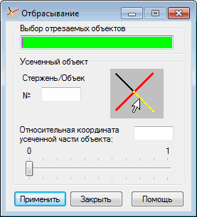 - поле Стержень/Объект – поле, в которое может быть введен номер стрежня или объекта, часть которого, подлежит обрезке;