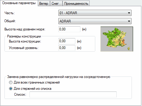 - Высота конструкции: указание высоты конструкции. На основании значения этого параметра определяется давление ветра;