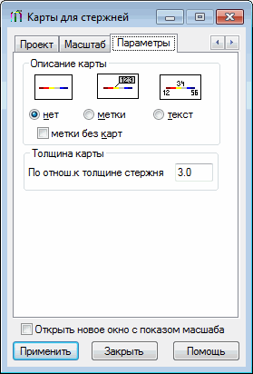 - В поле Толщина карты можно ввести число, определяющее отношение толщины линии, используемой в графике карты, к толщине линии в изображении стержней конструкции.
