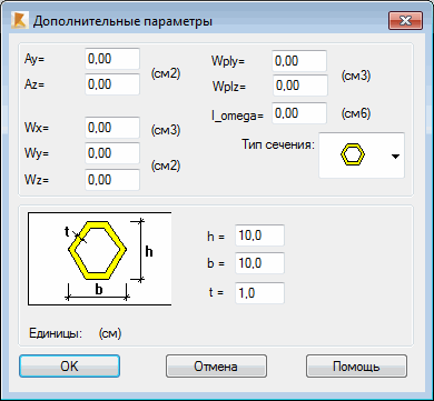 Вкладка Ax, Iy, Iz в диалоговом окне Новое сечение, позволяет определить сечение заданием его геометрических свойств.