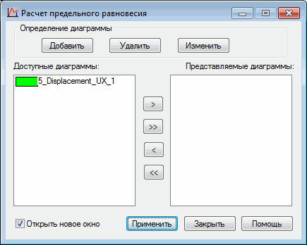 После того как графики определены и помещены в поле Представляемые графики диалогового окна Расчет предельного равновесия при нажатии на кнопку Применить начинается показ диаграмм. Графики представляются в той же форме что и графики при расчете форм колебаний.