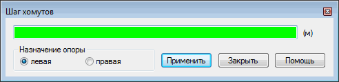 Эта опция используется для изменения шага хомутов при поперечном армировании балки вручную. Опция доступна после выбора из меню команды "Армирование / Шаг хомутов".