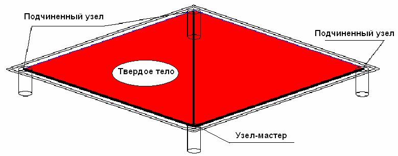 Задание жесткой связи между узлами эквивалентно введению условия жесткого соответствия любых перемещений этих узлов. Все узлы, связанные с мастер-узлом составляют группу, которую можно сравнить с твердым телом.