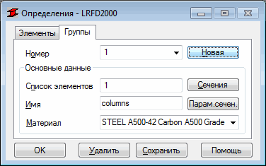 Этот параметр используется для задания групп стержней. Доступ к параметру осуществляется со второй вкладки диалогового окна "Определение". Отображается следующее: