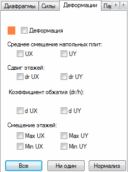 Если в диалоговом окне Диаграммы для строений выбрана вкладка "Деформация", окно принимает следующий вид: