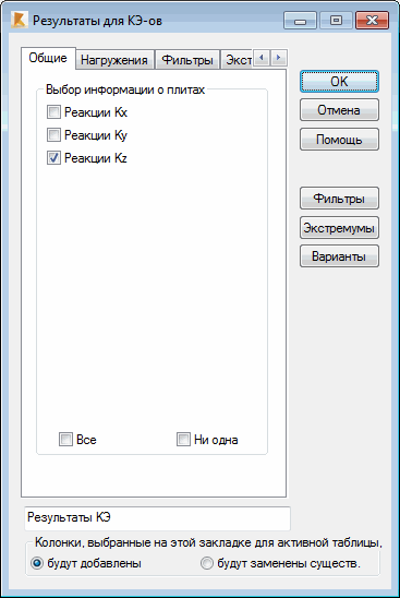 В поле Выбор информации о плитах можно выбрать для презентации в таблице следующие значения о по плитам: