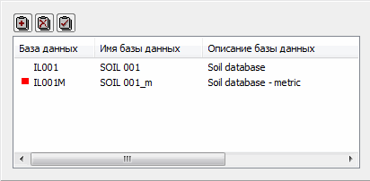 Это диалоговое окно используется для выполнения определенных операций с базами данных грунтов: