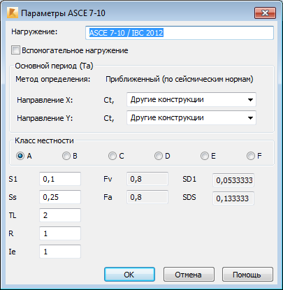 (A, B, C, D, E или F) определяется в зависимости от характеристик грунтов данной местности в соответствии с главой 20 ASCE 7.