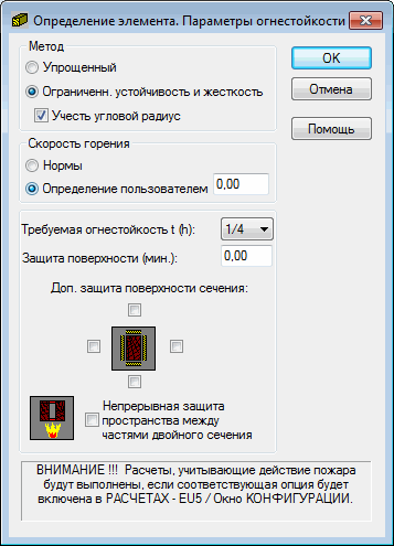 - Защита поверхности; общее время расчета пожара = время требуемой пожароустойчивости - защита поверхности; если время защиты поверхности больше или равно времени необходимой пожароустойчивости, тогда общее время равно или меньше нуля; секция полностью защищена от огня