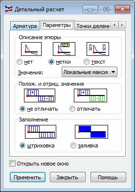 - Если активизировать опцию Открыть новое окно, на экране появится новое окно, в котором будут представлены эпюры величин, выбранных в диалоговом окне Детальный расчет.