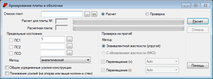 - расчеты выполняются только для панелей с номерами, указанными в поле Список панелей и для вариантов и вариантов сочетаний указанных в полях ULS, SLS, ACC.