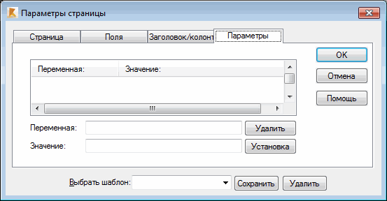 Для задания значения переменных выберите вкладку "Параметры" диалогового окна Параметры страницы.