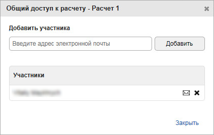 , чтобы отправить соавтору приглашение по электронной почте, содержащее ссылку на выбранный расчет. На странице проекта после предоставления доступа к расчету значок "Общий доступ" изменяется на