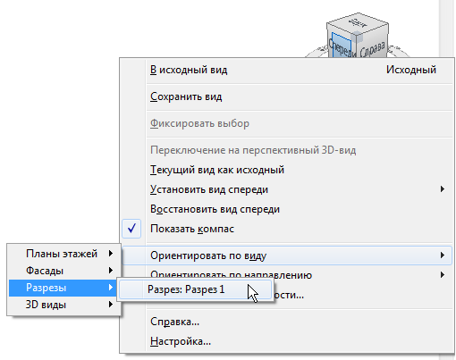 С помощью ViewCube можно ориентировать 3D-вид по любому плану, фасаду, разрезу или 3D-виду в проекте.