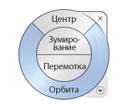 Штурвалы представляют собой меню отслеживания (которые следуют за курсором), из которых можно удобно выполнять переход к различным средствам 2D и 3D навигации.