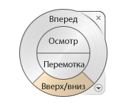 Нажатие и перетаскивание с использованием сегмента штурвала является основным режимом работы. При отображении штурвала выберите один из сегментов и удерживайте нажатой кнопку на указателе для активации панели навигации. Для изменения ориентации текущего вида используйте перетаскивание. При отпускании кнопки мыши открывается штурвал.