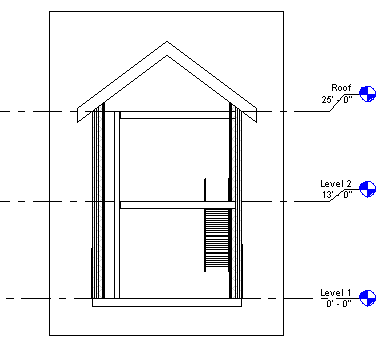 Можно воспользоваться существующим разрезом, однако следует убедиться в том, что линия разреза пересекает зону, в которой размещается пространство. В следующих примерах требуется только один разрез, так как каждый уровень состоит из одного пространства. В зависимости от сложности конструкции могут потребоваться дополнительные разрезы.