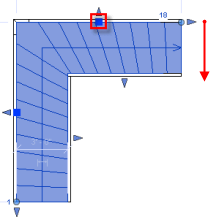 | 5 | Перетащите квадратный элемент управления на опоре забежной ступени для ее перемещения. Для сохранения исходной длины лестницы для опор забежных ступеней в марше автоматически выполняется добавление/удаление забежных ступеней. |
