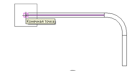 - В области рисования щелкните конечную точку короба, в которой требуется разместить соединительную деталь.