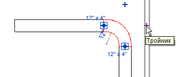 Чтобы выполнить обратную замену тройника на отвод, щелкните на значке "минус"(-) рядом с соединительной деталью.