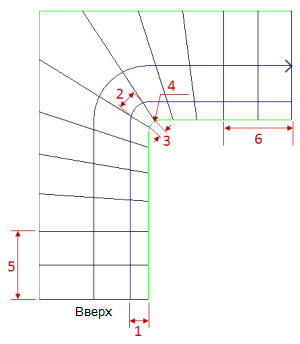 | Радиус сопряжения | Радиус, используемый для геометрии сопряжения на внутренних углах марша с забежными ступенями. (См. п. 4 в разделе "Свойства забежной ступени"). |