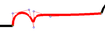 Если все же необходимо использовать сплайн, для уменьшения нагрузки на процессор следует использовать как можно меньше контрольных точек. На следующей иллюстрации показан сплайн, при создании которого использовалось большое количество контрольных точек (синие точки).