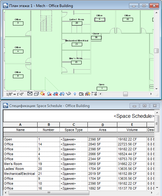 Спецификация пространств создается так же, как и любая другая спецификация в Revit.