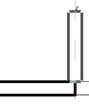 Разместите стену, подсоединенную к срединному торцу другой стены. При перетаскивании одной из соединенных стен соединение сохраняется с соответствующим увеличением или уменьшением длины другой стены.