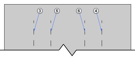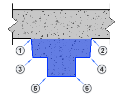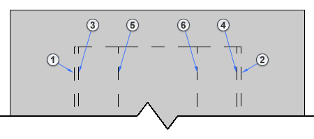 На этом виде в плане геометрия балки перекрывает кромки 3, 4, 5 и 6 балки, которые обозначаются штриховыми линиями. |