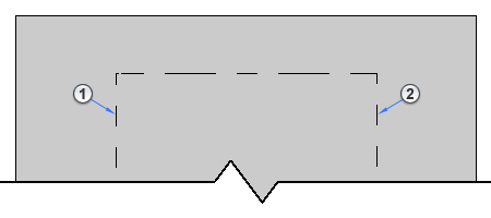 На этом виде в плане несущее перекрытие загораживает кромки 1 и 2 и концы балки, которые обозначаются штриховыми линиями. |