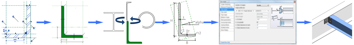 После обнаружения соответствия, в Revit создается необходимая геометрия сечения несущей конструкции на основе геометрии определенного семейства. Затем с помощью параметров, переданных из Revit API, создаются стальные соединения. Поддерживаются следующие формы для сопоставления (если для их параметра «Форма сечения» установлено значение «Не задано»).