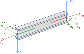 - Щелкните элемент "Редактировать усилия для элемента", чтобы открыть диалоговое окно "Усилия на конце элемента" и ввести значения усилий и моментов для элементов со связями.