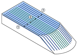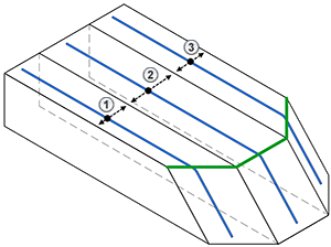 Аналогично выпуклым и вогнутым ребрам поверхности, арматурный стержень произвольной формы не пересекает ребра грани основы, состоящие из 2 или более сегментов прямой линии.
