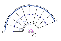 - Переместите курсор по часовой стрелке или против часовой стрелки, чтобы задать направление вращения, и щелчком мыши задайте конечную точку и общее количество подступенков.