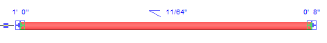 - Щелкните элемент управления временной длиной над сегментом трубы, введите требуемую длину трубы и нажмите клавишу Enter.