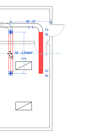 - Перетащите элемент управления для перемещения или удлинения сегмента кабельного лотка до новой конечной точки, либо для соединения с другим кабельным лотком.