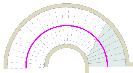 Поскольку активным является режим эскиза, можно изменить форму линии. Линия ограждения может состоять из соединенных прямых и дуговых сегментов, но она не должна образовывать замкнутый контур. Изменение размеров сегментов выполняется перетаскиванием ручек синего цвета. См. разделы Ручки управления и формы и Разделение элементов. Ограждение можно разместить даже по средней линии лестницы. Построение нескольких ограждений в одном сеансе построения эскиза не допускается. Для каждого случая построения ограждения следует завершить эскиз, прежде чем будет предоставлена возможность построить другое ограждение. На виде модели ограждения можно использовать инструмент «Разделение». При выполнении разделения автоматически создаются 2 отдельных эскиза ограждения.