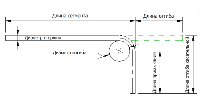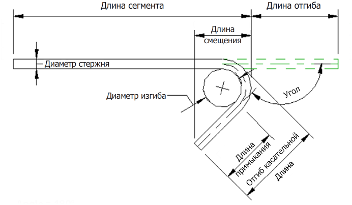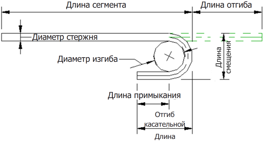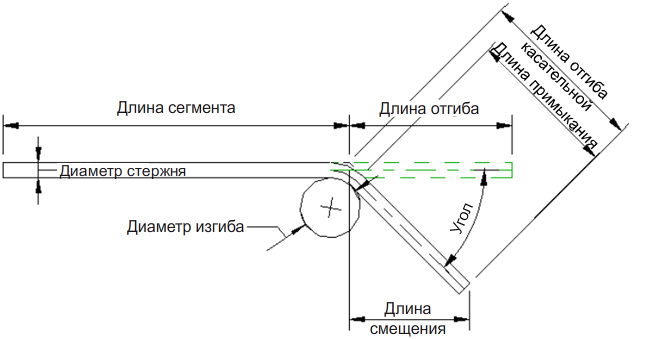 На следующих рисунках показаны параметры, определяющие отгиб арматурного стержня.