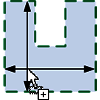 | Форма поперечного сечения основы | Положение курсора мыши | Рамка, ограничивающая удлинение |