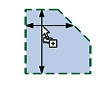 На следующей схеме показаны случаи автоматического удлинения различных форм арматурных стержней и положения курсора мыши. Защитный слой арматуры и контур основы представлены зеленой штриховой линией. Область перемещений курсора указана черными стрелками. Черные прямоугольные рамки с серыми стрелками ограничивают удлинение; по этим рамкам корректируются форма и размер арматурных стержней.