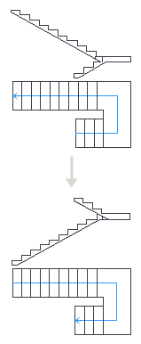 На виде плана, фасада или разреза можно развернуть направление лестницы вверх или вниз. Эта функция сохраняет расположение, но изменяет исходное направление.