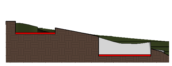 На следующей иллюстрации показан 3D вид основания здания на топо-поверхности.