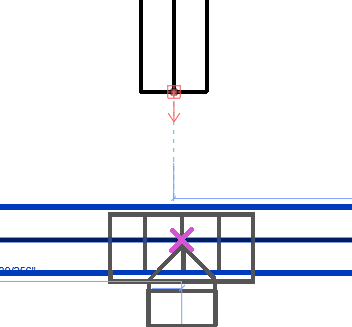 При вставке или врезке элемента из базы данных производителя, например Т-образного пересечения, в прямой участок путем привязки к пересекающей контрольной линии ответвления, можно выполнить привязку, щелкнув ребро прямого участка, вместо того чтобы нажимать на его осевую линию.